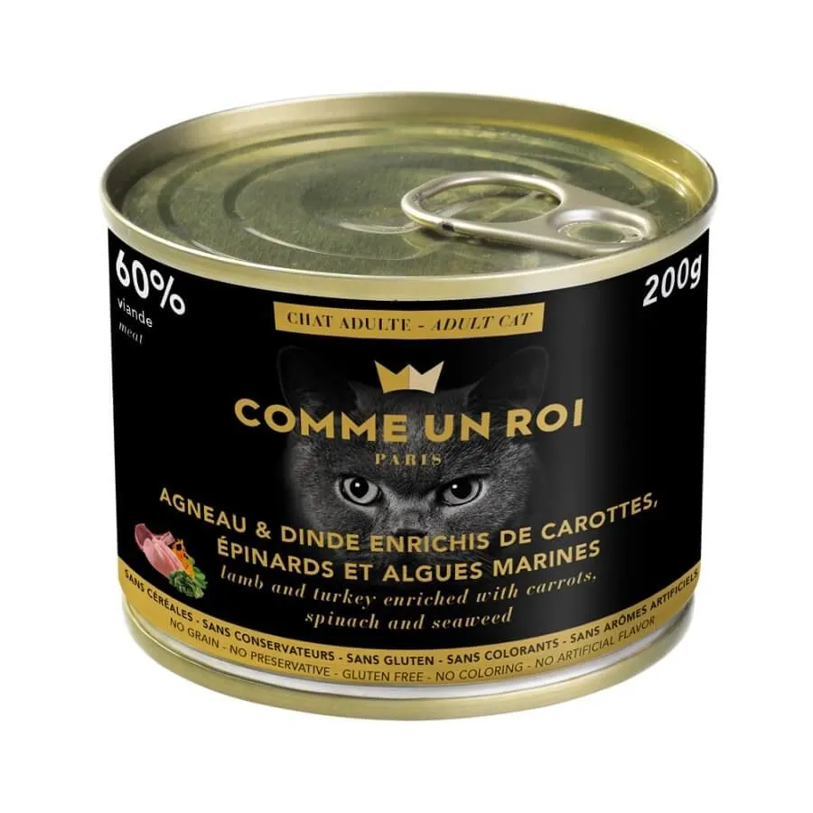 La pâtée Comme un roi est riche en protéines, saine et équilibrée pour garantir le bien être de votre chat qui va adorer son bon goût d’agneau.