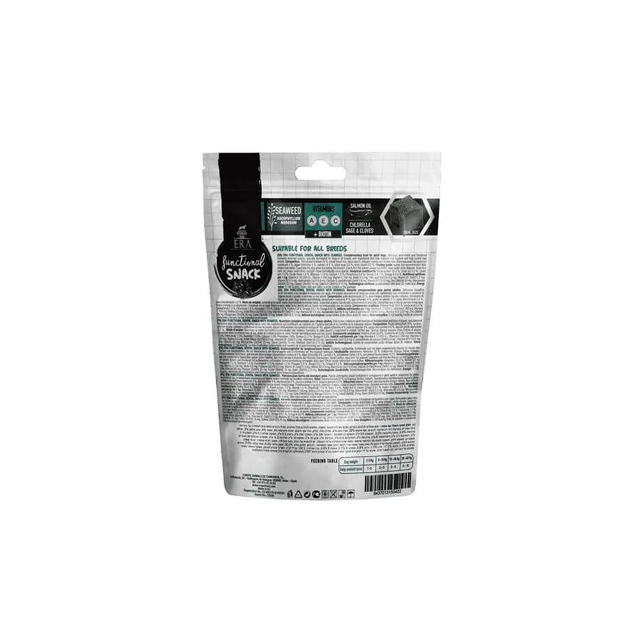Le snack Dental aux algues de ERA Millennium est une friandise adaptée à votre chien. Ce snack nutritif et délicieux est conçu pour soutenir l’hygiène bucco-dentaire de votre animal.
