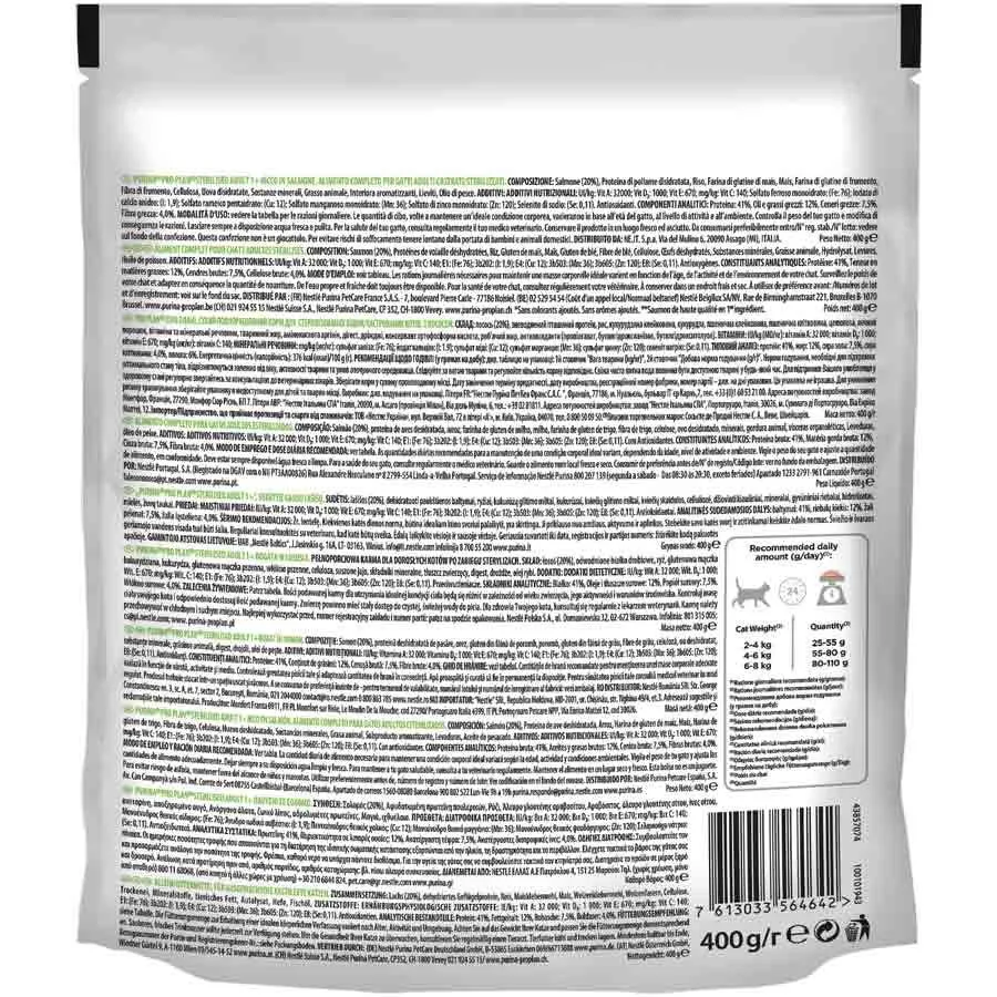 Purina Proplan Chat Sterilised associe tous les nutriments essentiels dont des vitamines A, C et E, ainsi que des acides gras Oméga 3 & 6, dans un aliment à haute teneur en protéines et faible teneur en matières grasses.